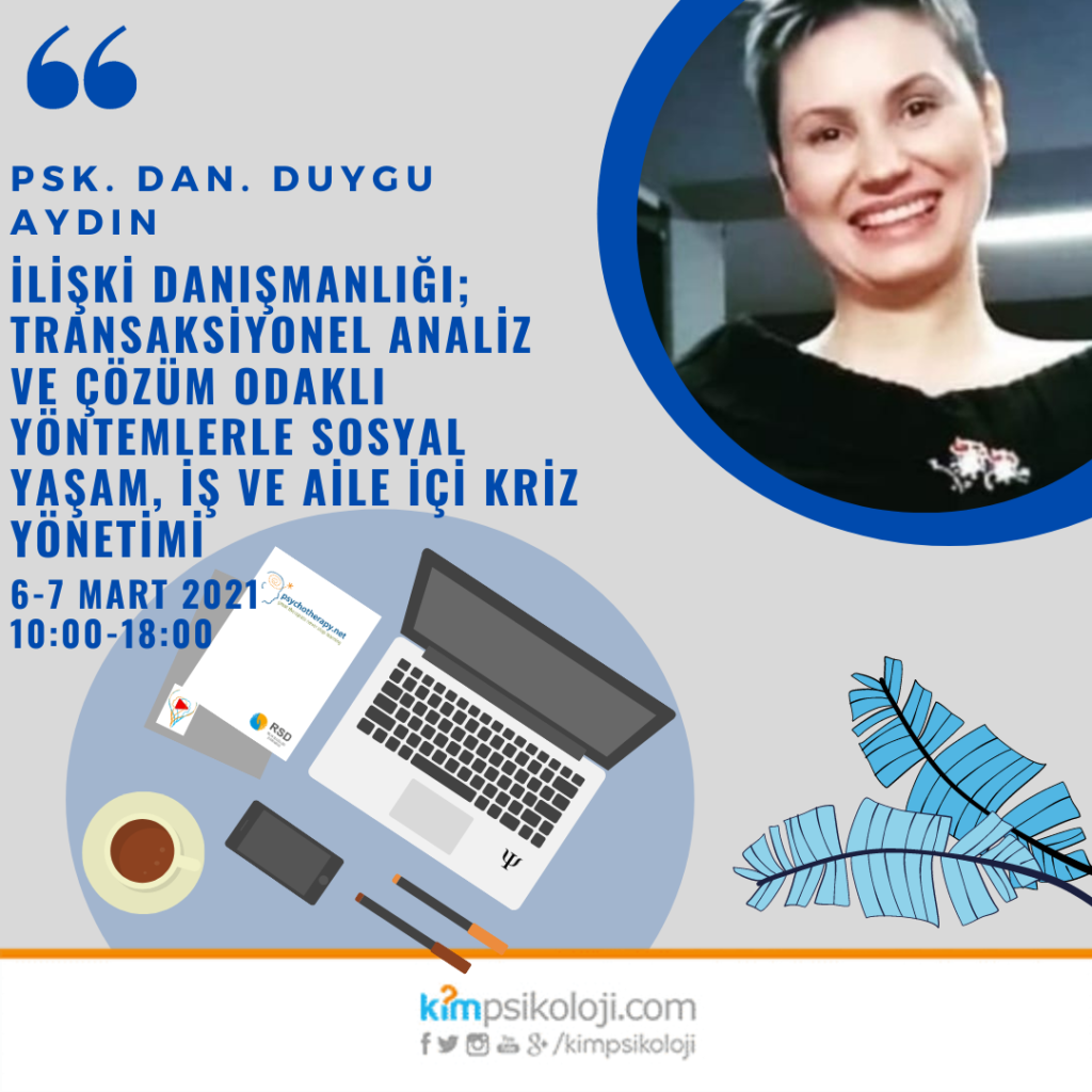İLİŞKİ DANIŞMANLIĞI; TRANSAKSİYONEL ANALİZ VE ÇÖZÜM ODAKLI YÖNTEMLERLE SOSYAL YAŞAM, İŞ VE AİLE İÇİ KRİZ YÖNETİMİ Psk. Dan. Duygu AYDIN