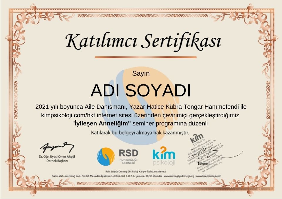 d- Hatice Kübra Tongar 2021 yılı 12 seminer + Online Çocuk Psikoloji Seminerleri 120 seminer: 1000 TL