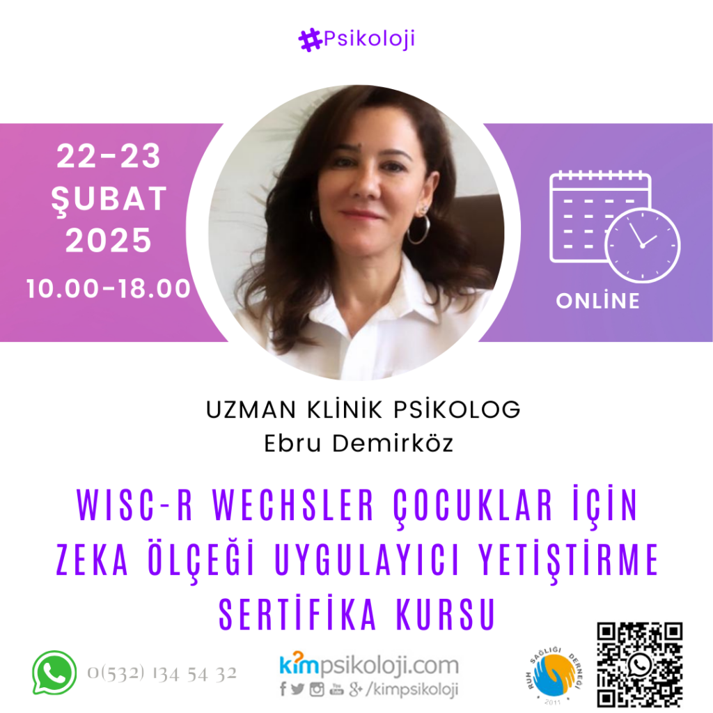 WISC-R Wechsler Çocuklar İçin Zeka Ölçeği Uygulayıcı Yetiştirme Sertifika Kursu Uzman Klinik Psikolog Ebru Demirköz Eğitim Tarihi: 22/02/2025