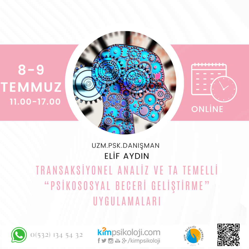 TRANSAKSİYONEL ANALİZ VE TA TEMELLİ “PSİKOSOSYAL BECERİ GELİŞTİRME” UYGULAMALARI Uzm. Psk. Dan. Elif AydınEğitim Tarihi: 08/07/2023