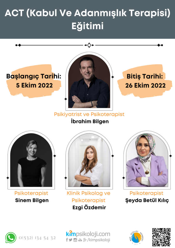 ACT (Kabul ve Adanmışlık Terapisi) Eğitimi Psikiyatrist ve Psikoterapist İbrahim BilgenEğitim Tarihi: 05/10/2022