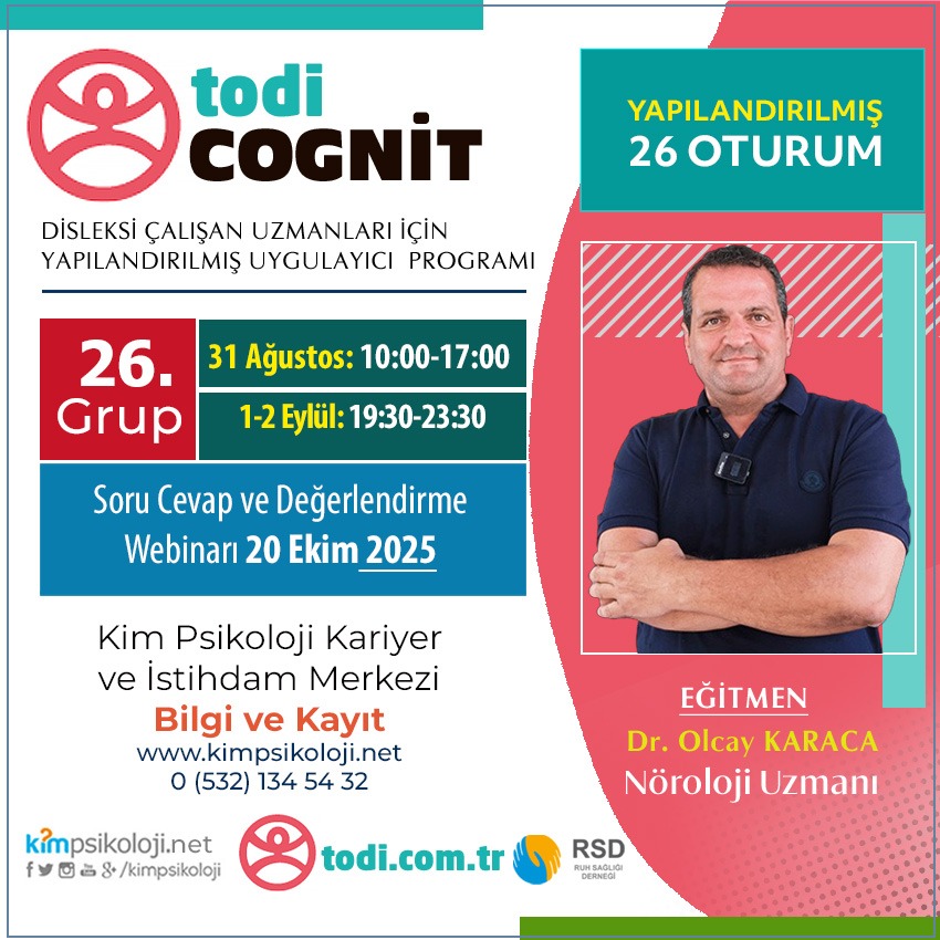 todi-COGNİT ÖĞRENME GÜÇLÜĞÜ (DİSLEKSİ) BİLİŞSEL MÜDAHALE UYGULAMALARI EĞİTİMİ Nöroloji Hekimi Dr. Olcay KARACAEğitim Tarihi: 31/08/2025