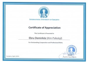 INTERNATIONAL UNIVERSITY OF SARAJEVO teşekkür belgesi
