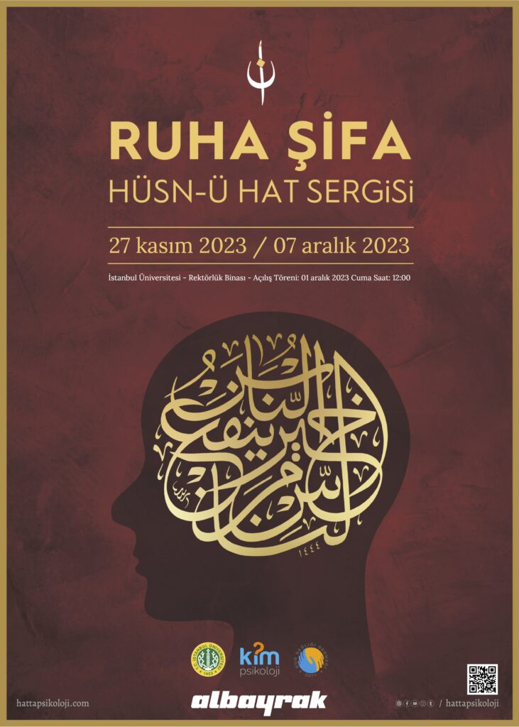 1 aralık 2023 cuma günü saat 12:00 de açılış töreni yapılacak olan @hattapsikoloji #RuhaŞifa #hüsnühat sergimizi 27 kasım-7 aralık 2023 tarihleri arasında İstanbul Üniversitesi Rektörlük Fuaye alanında ziyaret edebilirsiniz. Açılış törenimize bekliyoruz. @iu1453 @hattapsikoloji @kimpsikoloji @ruhsagligider @rsdogrencimeclisi @albayrak@albayrakhat ve daha fazlası: www.HattaPsikoloji.com