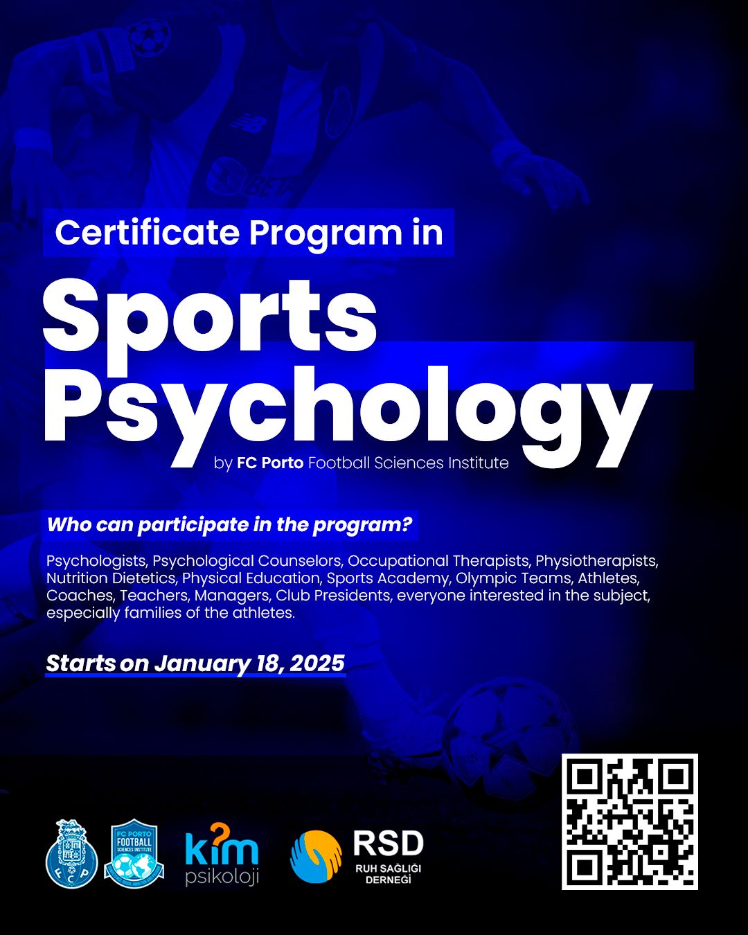 Spor Psikolojisi alanı son yıllarda dünyada oldukça büyük gelişmeler kat etmiştir. Ancak bu alan Türkiye için oldukça yeni ve gelişmekte olan bir alandır. Bu nedenle; Spor Psikolojisi üzerine akademik çalışmalar yapan kurum ve kuruluşların gelişme potansiyeli spor psikolojisi alanında ciddi bir eğitim ihtiyacı ortaya çıkarmaktadır. Alandaki bu büyük gereksinimi gidermek amacıyla; “Spor Psikolojisi Sertifika Kursu Programı” düzenlenmiştir. UFS’nin sponsorluğunda 16 farklı modüllerden oluşan sertifika programının tamamına katılan adaylara FC Porto & Football Science Institute & Ruh Sağlığı Derneği onaylı uluslararası Sertifika FC Porto & Football Science Institute tarafından verilecektir.