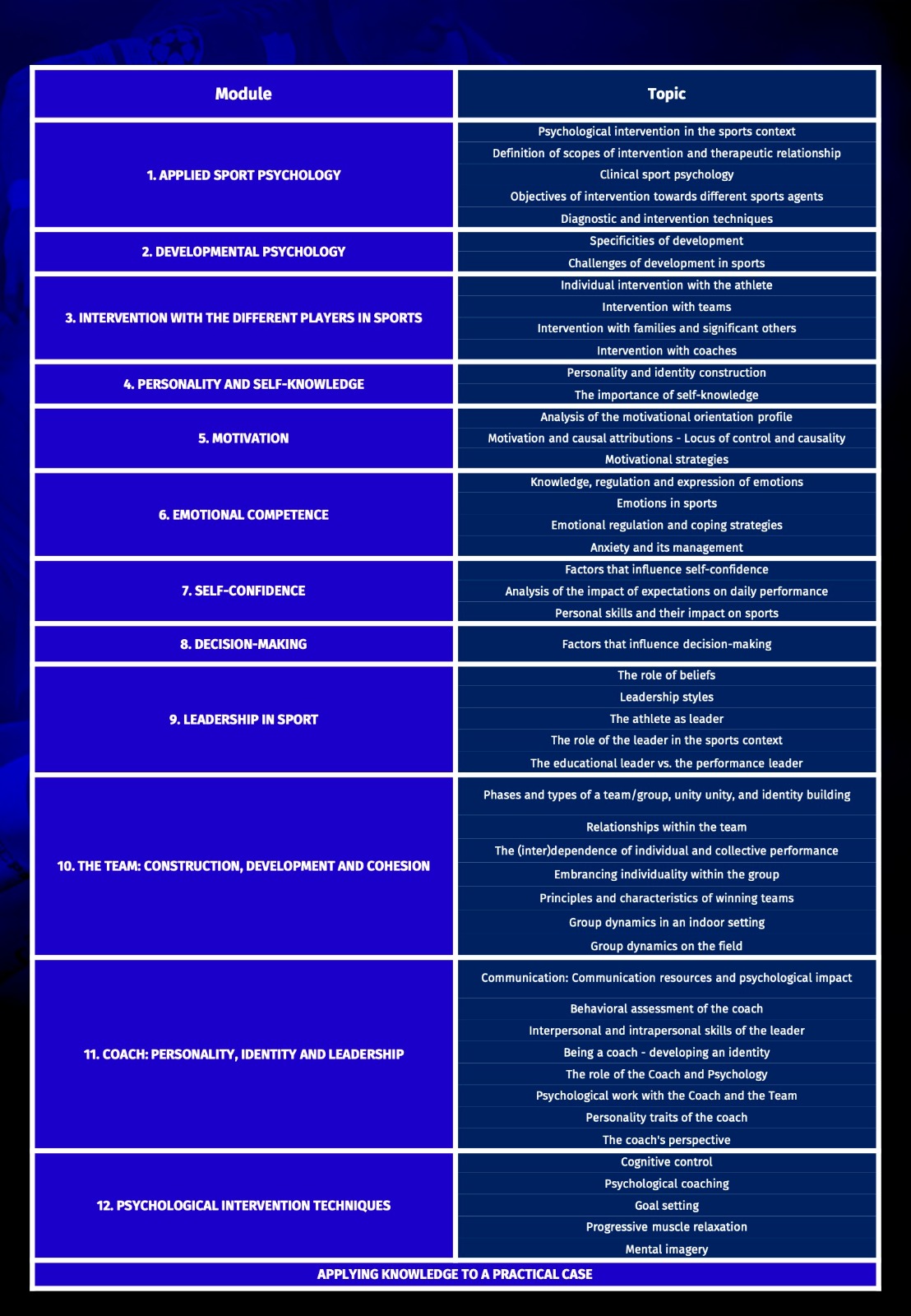 Programın ingilizce içeriğine erişmek için tıklayınız: Sports Psychology