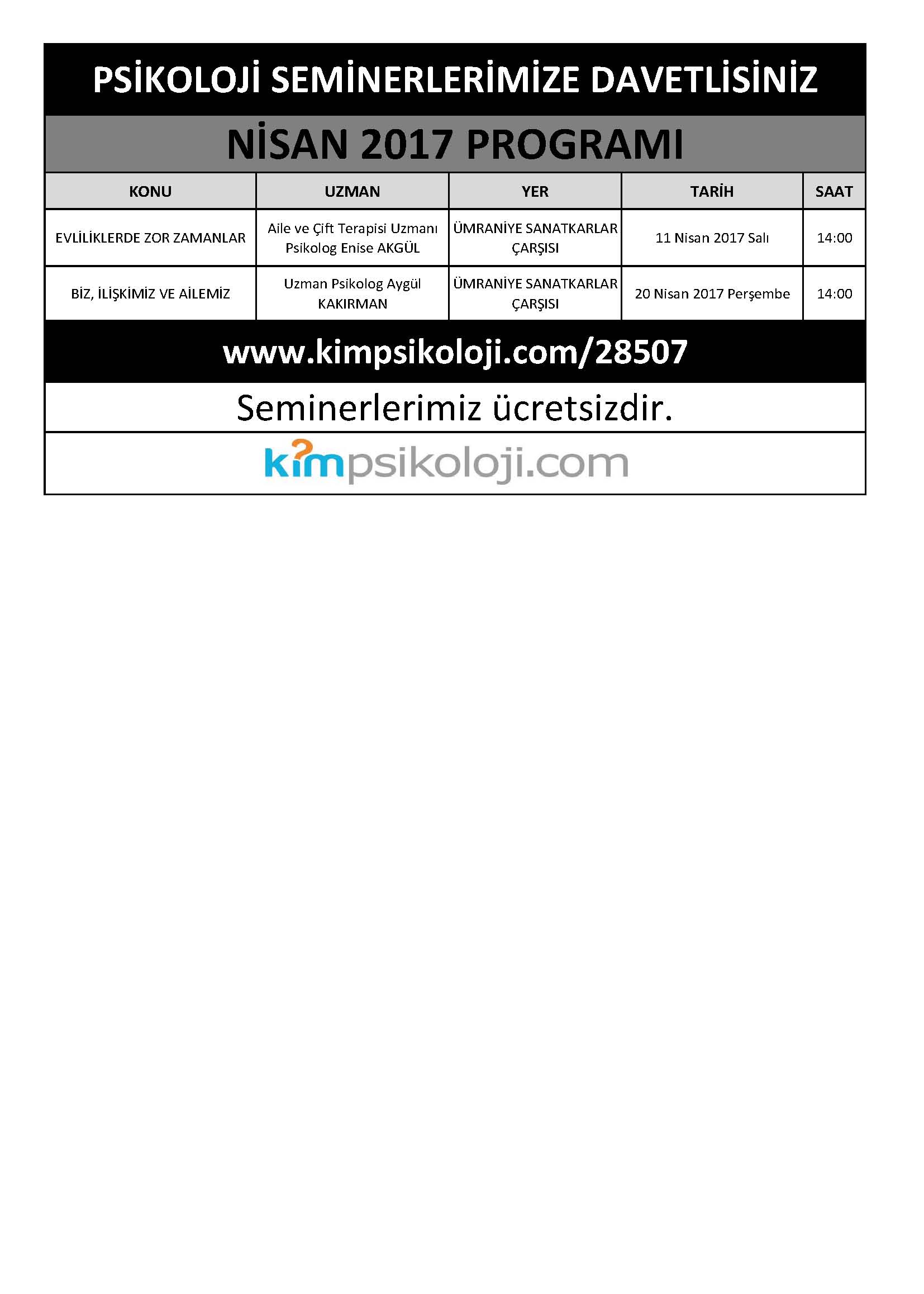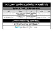 ÜCRETSİZ PSİKOLOJİ SEMİNER PROGRAMI NİSAN 2017